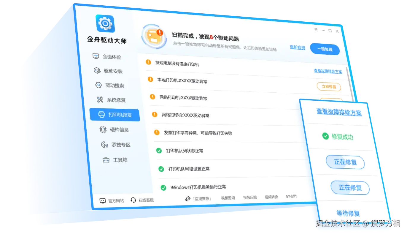 涵盖市面上几乎所有主流品牌与型号的打印机,自动扫描安装适合您打印机的驱动,解决打印机无法打印,打印机打印报错等存在的任何驱动问题。
