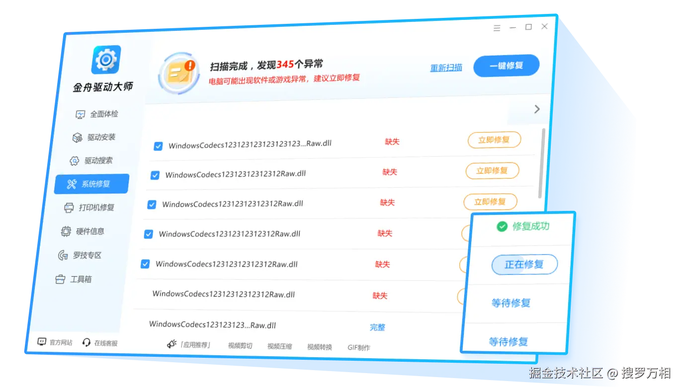 DLL丢失,全面扫描自动修复
