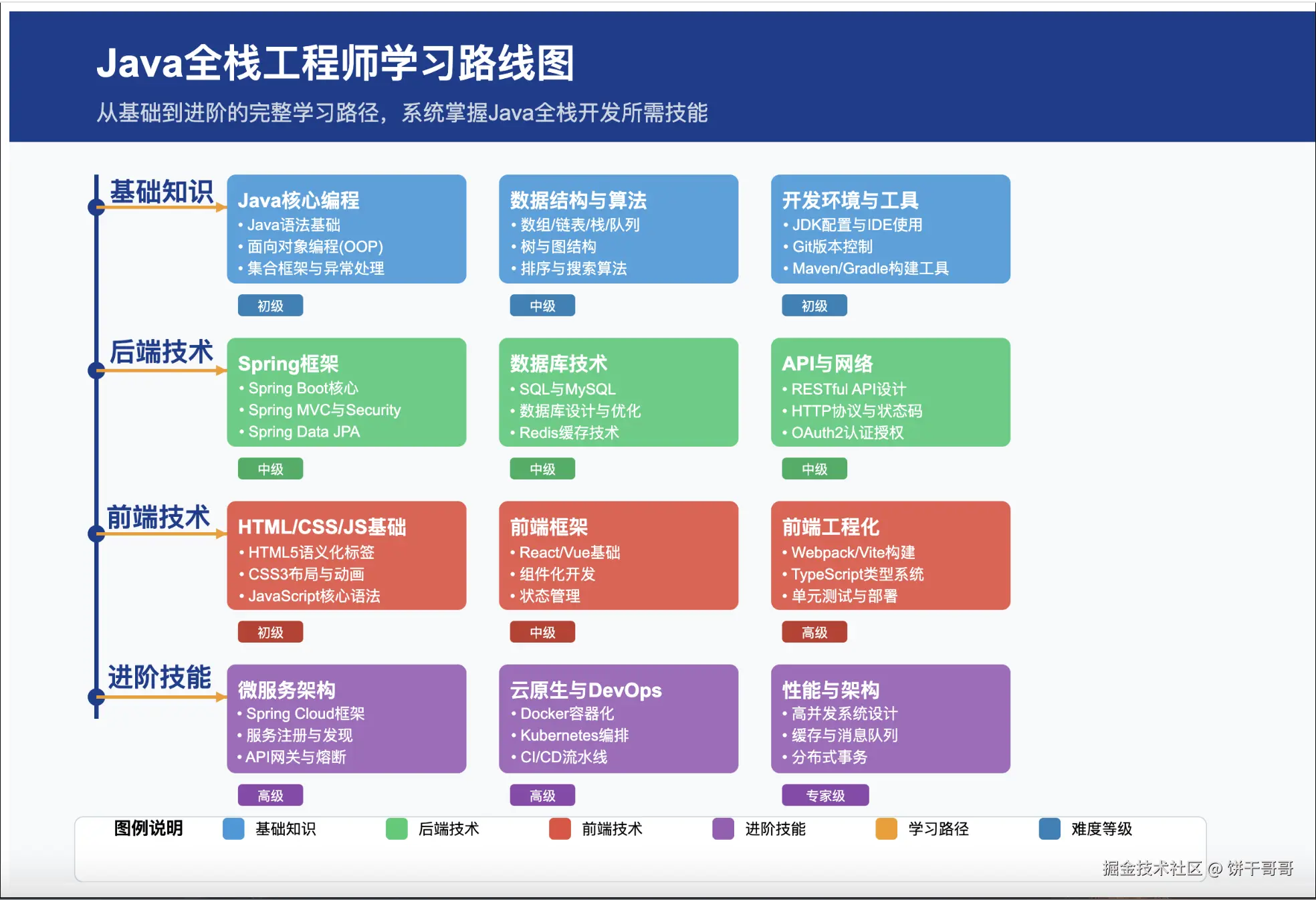 | 技术路线图 | 展示技术发展路径和学习路线 | 职业规划、技能体系构建 |