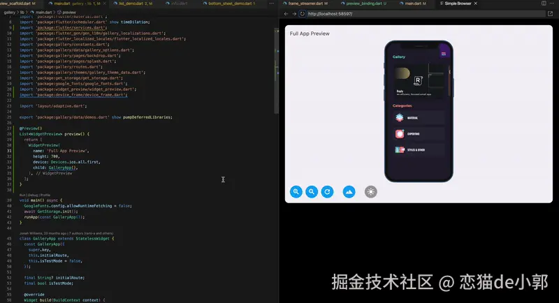 目录下生成一个预览工程,并通过 Flutter Web 的方式进行渲染,所以整体可交互程度也会比较高。