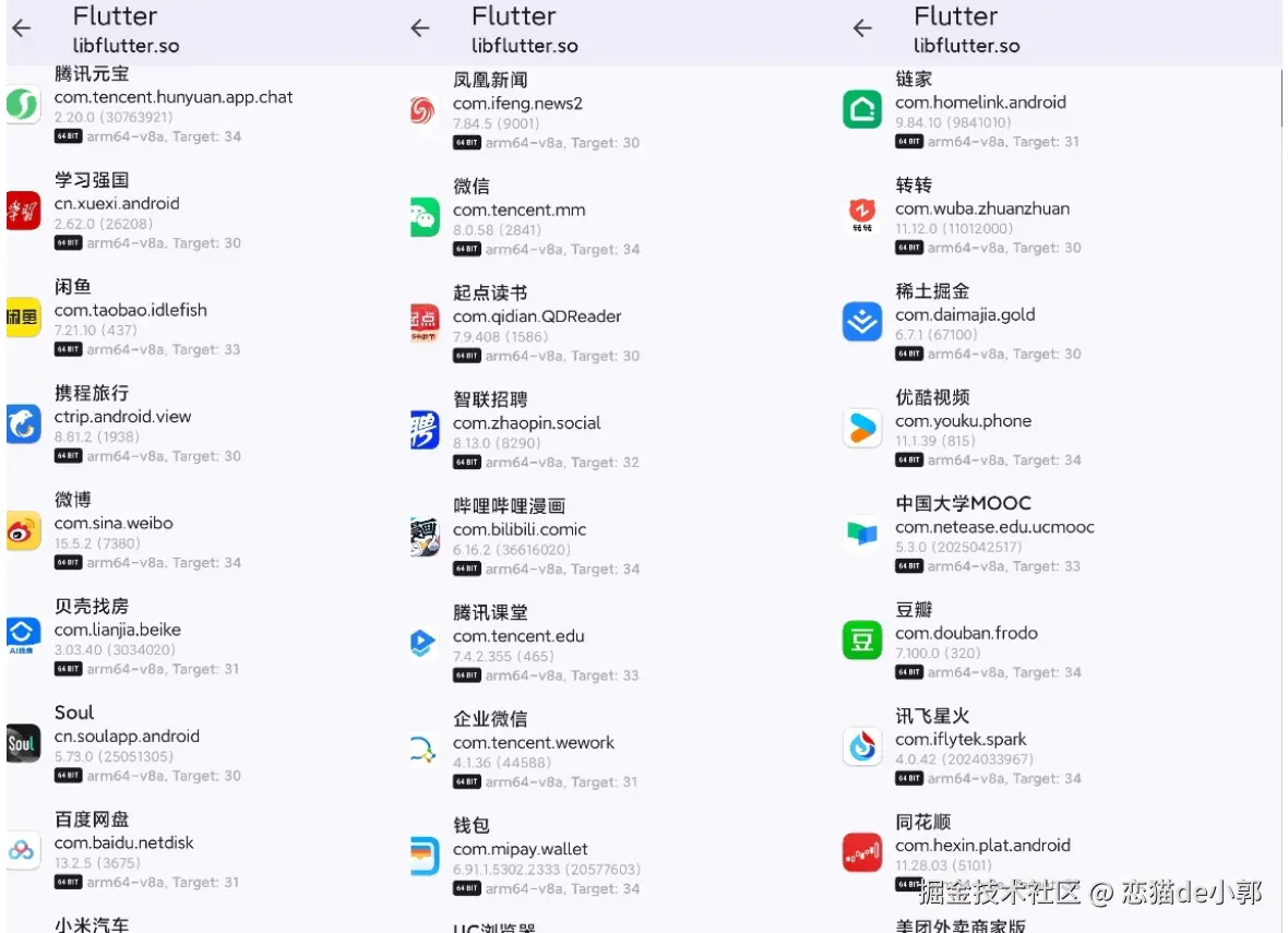 其实 Flutter 从开源到现在一直以来“争议”还是比较多的,但是开源到现在也有 8 年时间了,如果从内部立项看,去年也已经过了十周年,官方去年也发过十周年的纪念内容,所以兜兜转转到现在,其实 Flutter 已经不算是一开始一样的小众框架了,比如在国内大厂,它可能不是主力框架,但是也开始融入到各个地方,比如这张图,我们可以看到不少熟悉的身影: