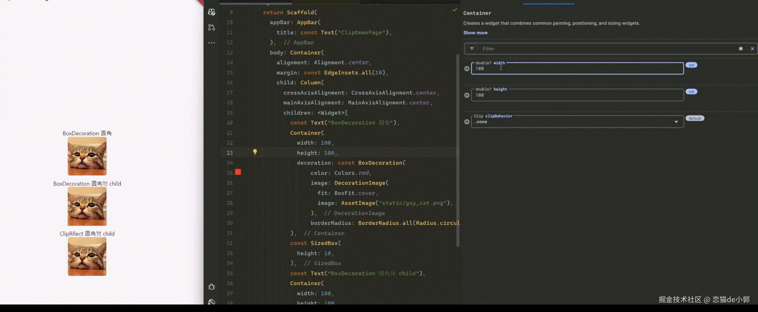 第一个就是 Property Editor,它需要 Flutter 3.32+ 才支持使用,属于 IDE 增强工具,可以直接在可视化界面查看和修改 Widget 属性: