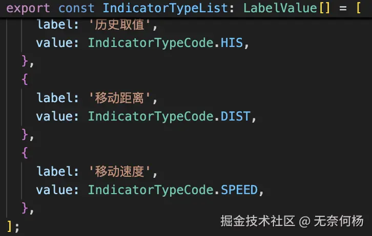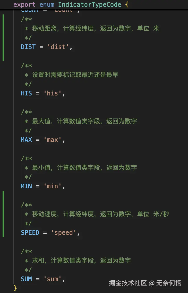 对应前端indicator-type.ts,增加移动距离和移动速度,对应后端的code。