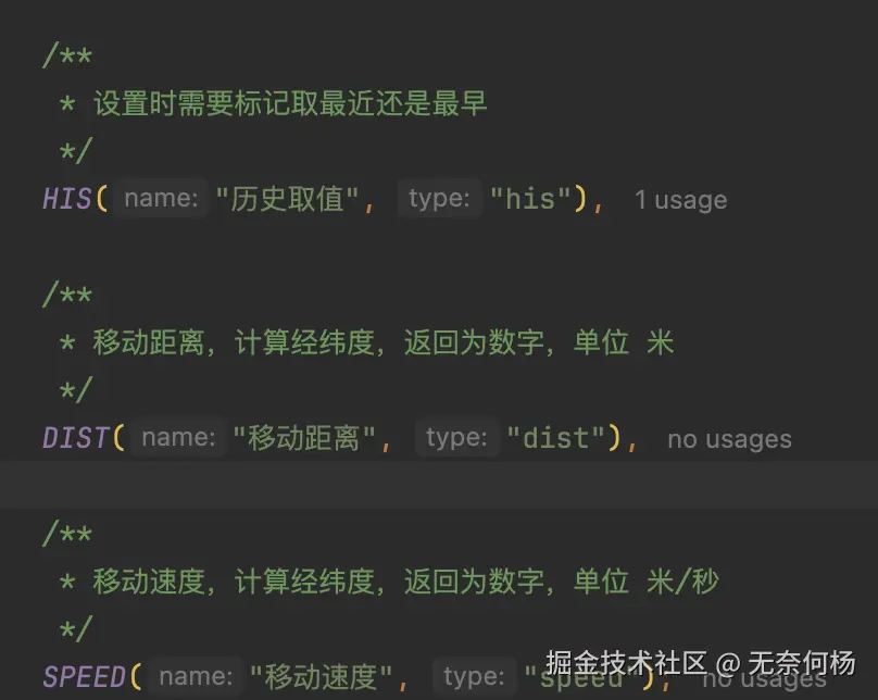 同样对应项目的IndicatorType,增加移动距离和移动速度的返回类型,这里返回类型都是整数,主要用于在规则条件中使用