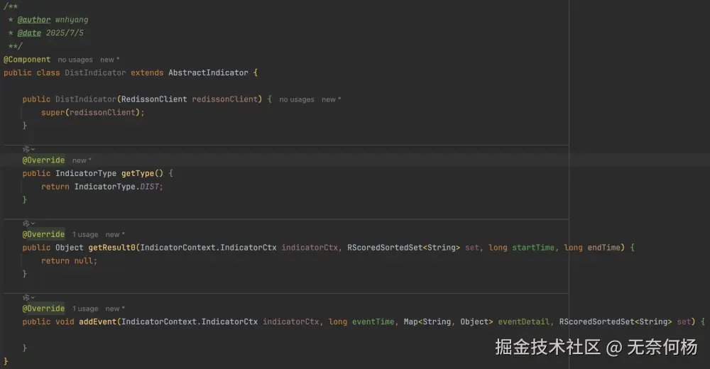 注意:a、必须为容器bean,如上图@Component;b、构造方法;c、实现抽象方法,指标类型、添加事件、获取结果。
