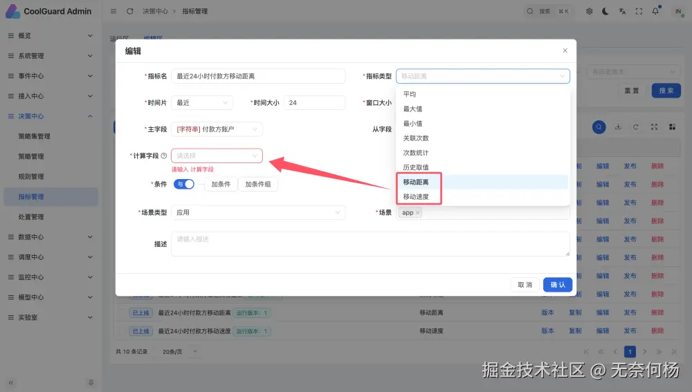 如上移动距离和移动速度都需要计算字段,所以在需要计算字段的列表中增加新的指标。