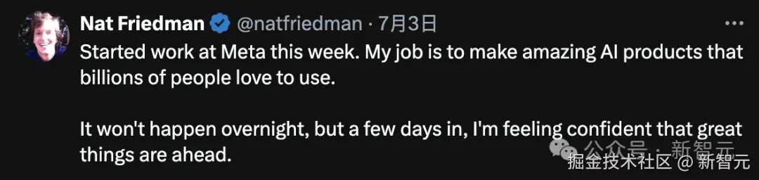 **Meta 新职位:**Meta 首席 AI 智能官(Chief AI Officer),负责新设立的「超级智能」部门