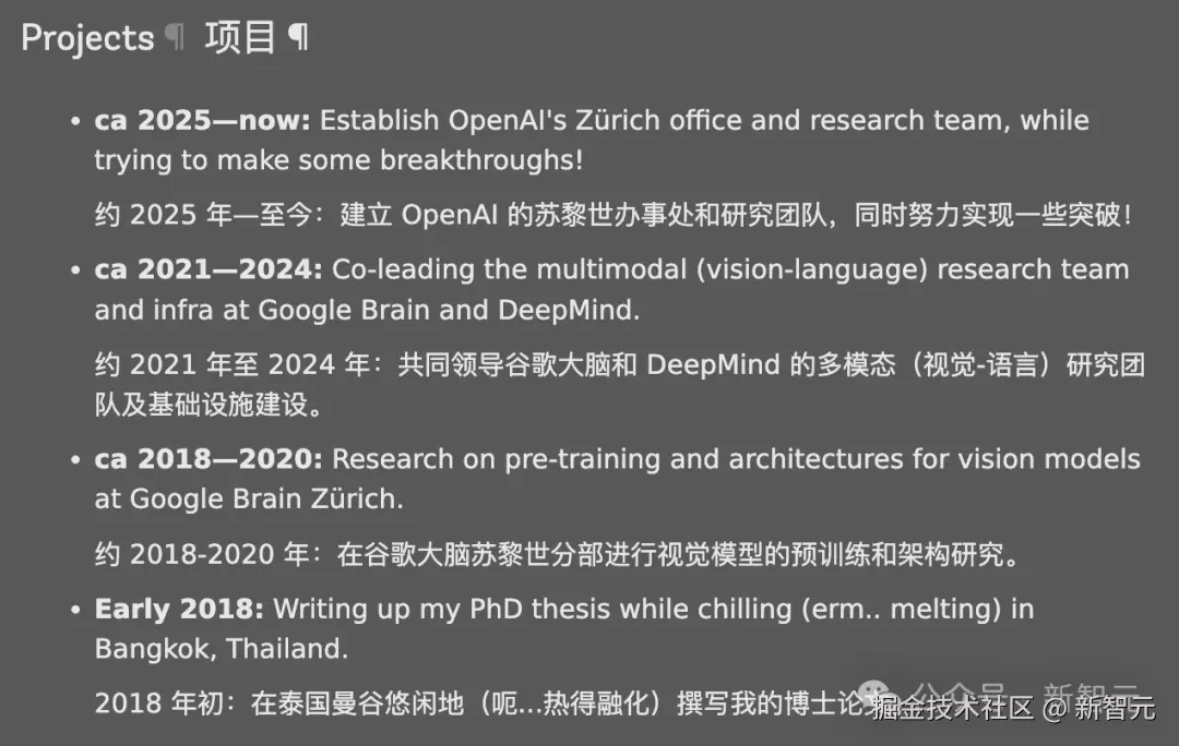 背景:自称 “自学成才黑客」,前谷歌 DeepMind(原 Brain)苏黎世分部的高级研究科学家,联合领导模态研究工作和代码库项目。与 Xiaohua Zhai 和 Alexander Kolesnikov 创立了苏黎世 OpenAI 办公室。