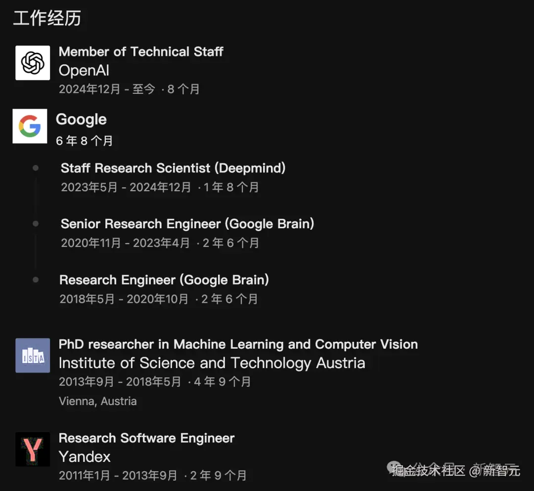 **原职位:**前谷歌 DeepMind(原 Brain)苏黎世分部的高级研究科学家,苏黎世 OpenAI 办公室创始人。