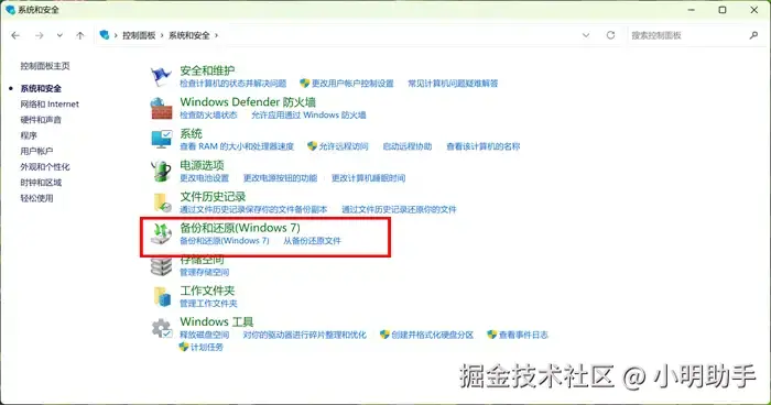 步骤1: 在电脑中找到“控制面板”,在主页面上选择“备份与还原”;