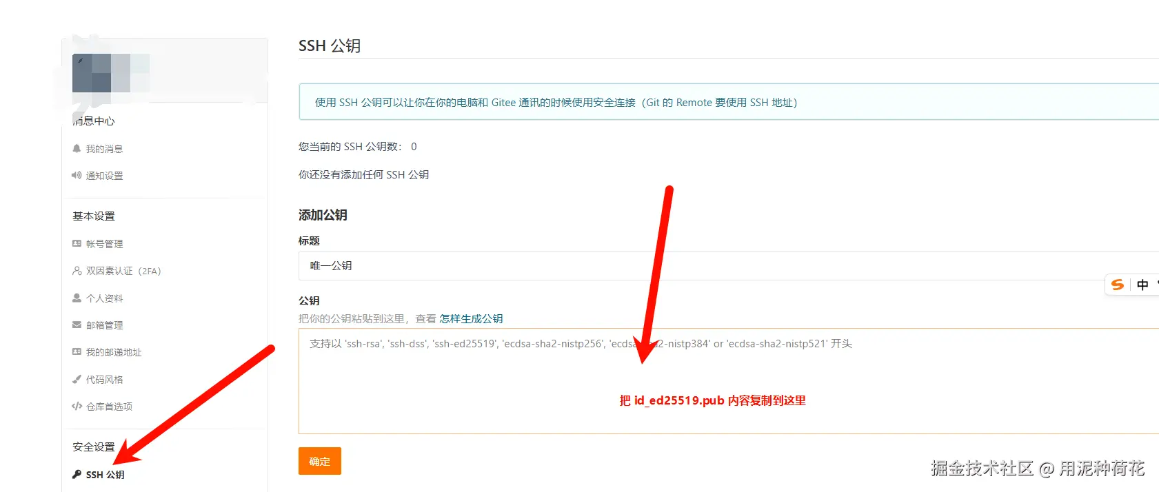 复制 id_ed25519.pub 公钥的内容