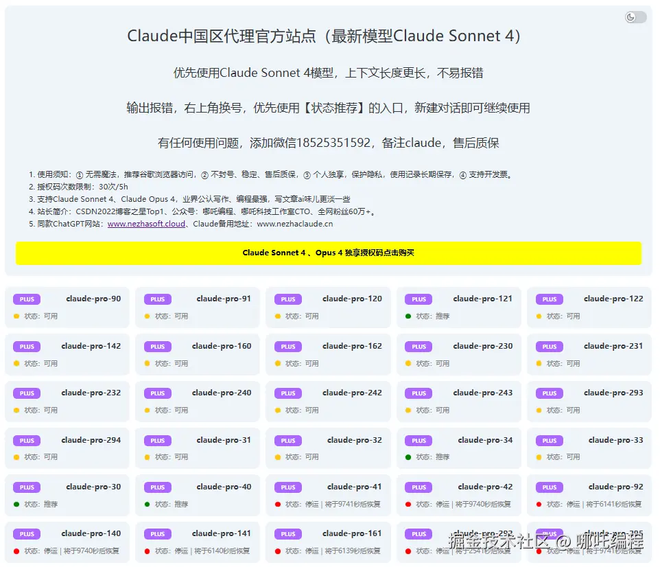 我用的这个Claude镜像网站,最重要的是不封号,月卡就是可以用满30天,通过负载均衡机制、保障Claude服务的高可用。