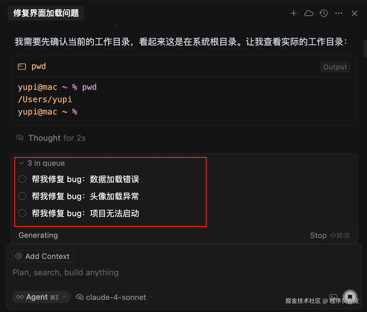 以前使用 Agent 最痛苦的就是等待。你想到一个新需求,但 Agent 还在处理上一个任务,只能干等着。现在有了 消息队列功能,你可以直接把后续的指令发送给 Agent,它会自动排队执行。