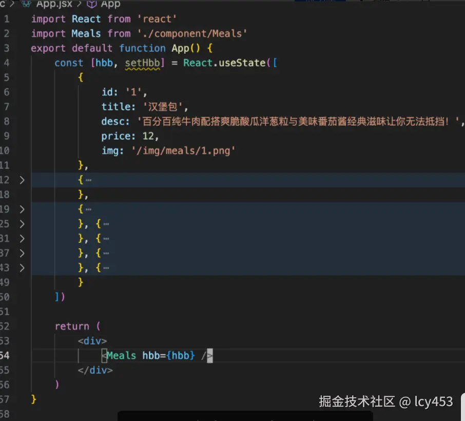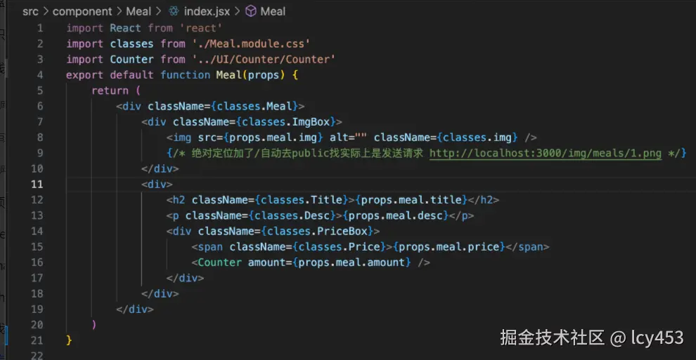 没什么好说的,一个Meals组件作为容器组件,Meal作为列表组件。遍历Meal展示。