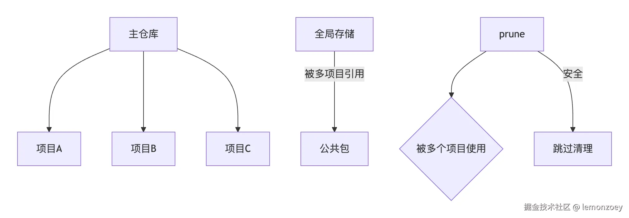 | 硬链接 | 项目中的文件指向全局存储的同一个物理位置 | 避免重复存储相同文件 |