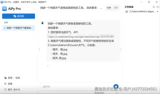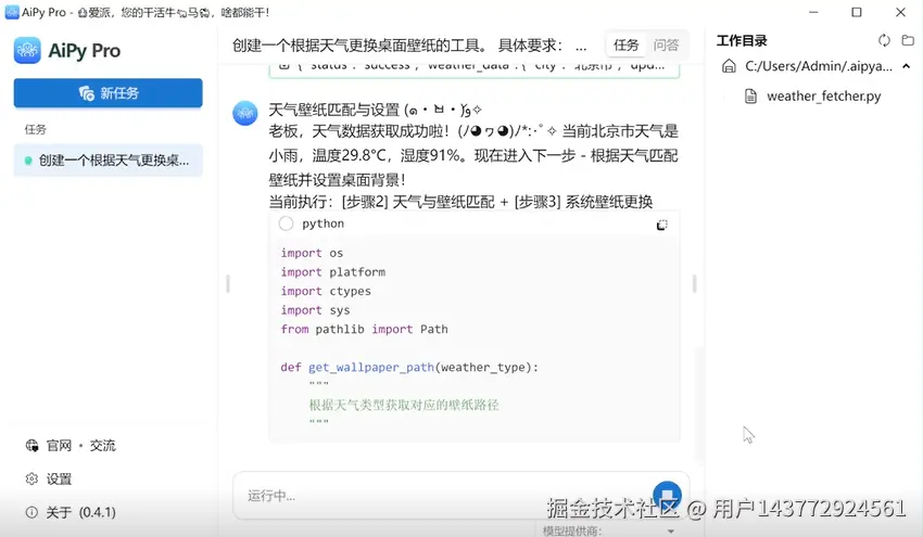 Aipy 天气壁纸工具的操作流程极为简洁高效。用户只需通过一个命令开启权限,软件便能自动完成定位与天气匹配,无需复杂的设置调试,即使是电脑操作经验较少的用户也能轻松上手。此外,用户还可根据个人需求,自由定制壁纸更新频率,既可选择实时跟随天气变化,也能设定为每天固定时间更新,充分满足个性化使用场景。