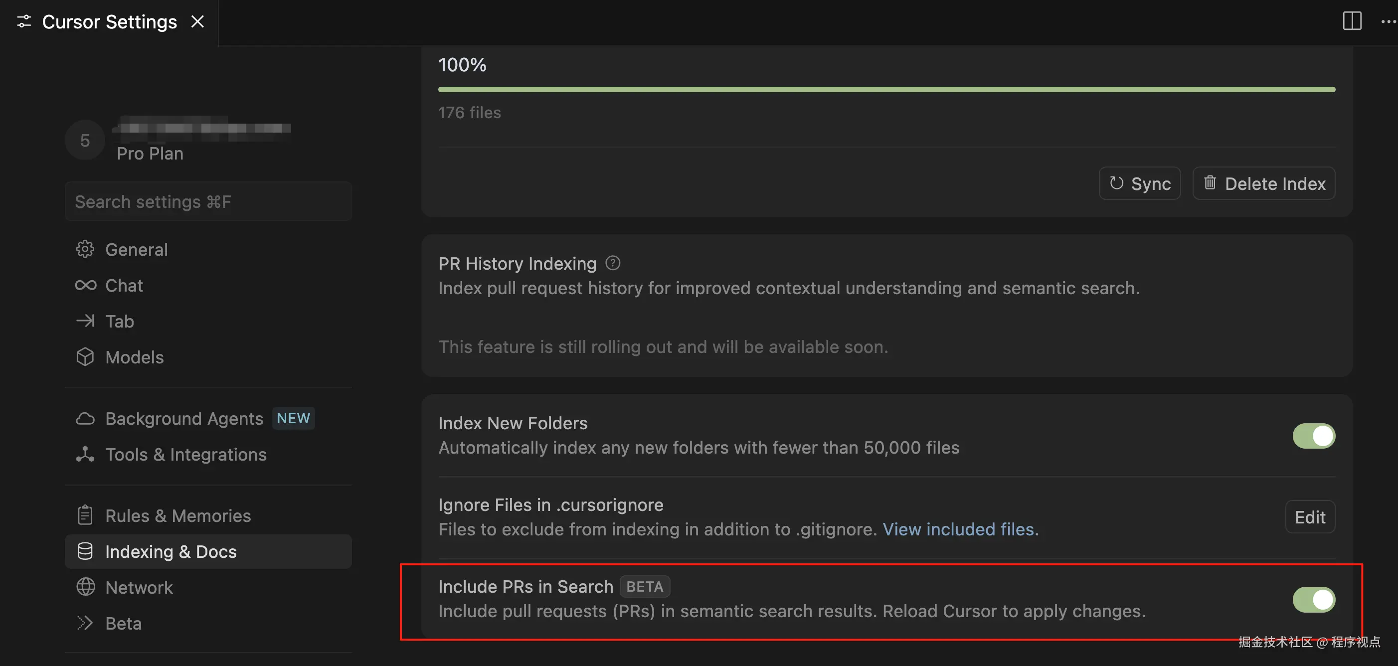 注意,想使用这个功能,需要确保设置中开启了对 PR 的索引: