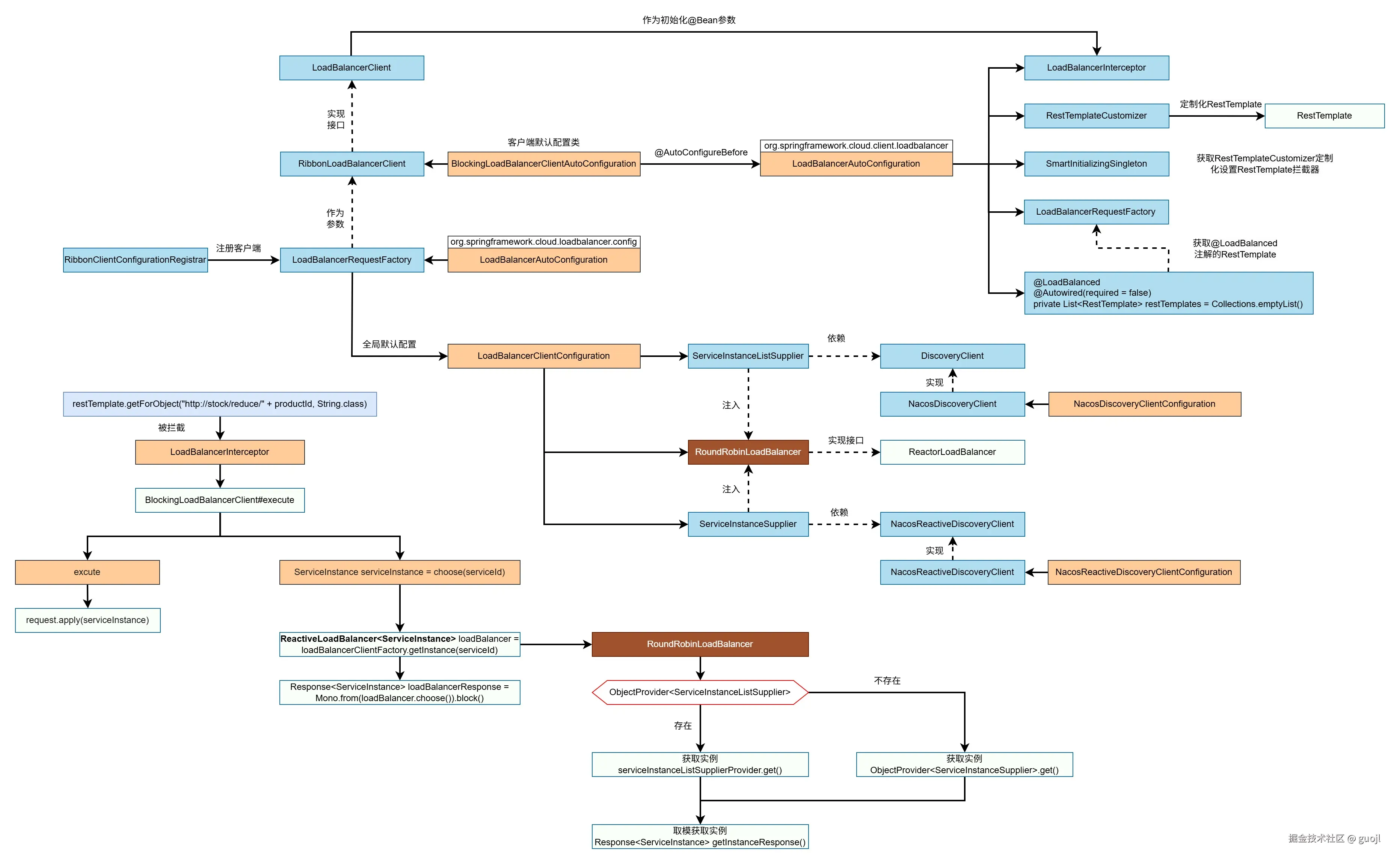 LoadBalancer依赖spring-cloud-loadbalancer.jar配置自动装配类LoadBalancerAutoConfiguration与BlockingLoadBalancerClientAutoConfiguration,借助spring.factories文件实现配置发现和解析。