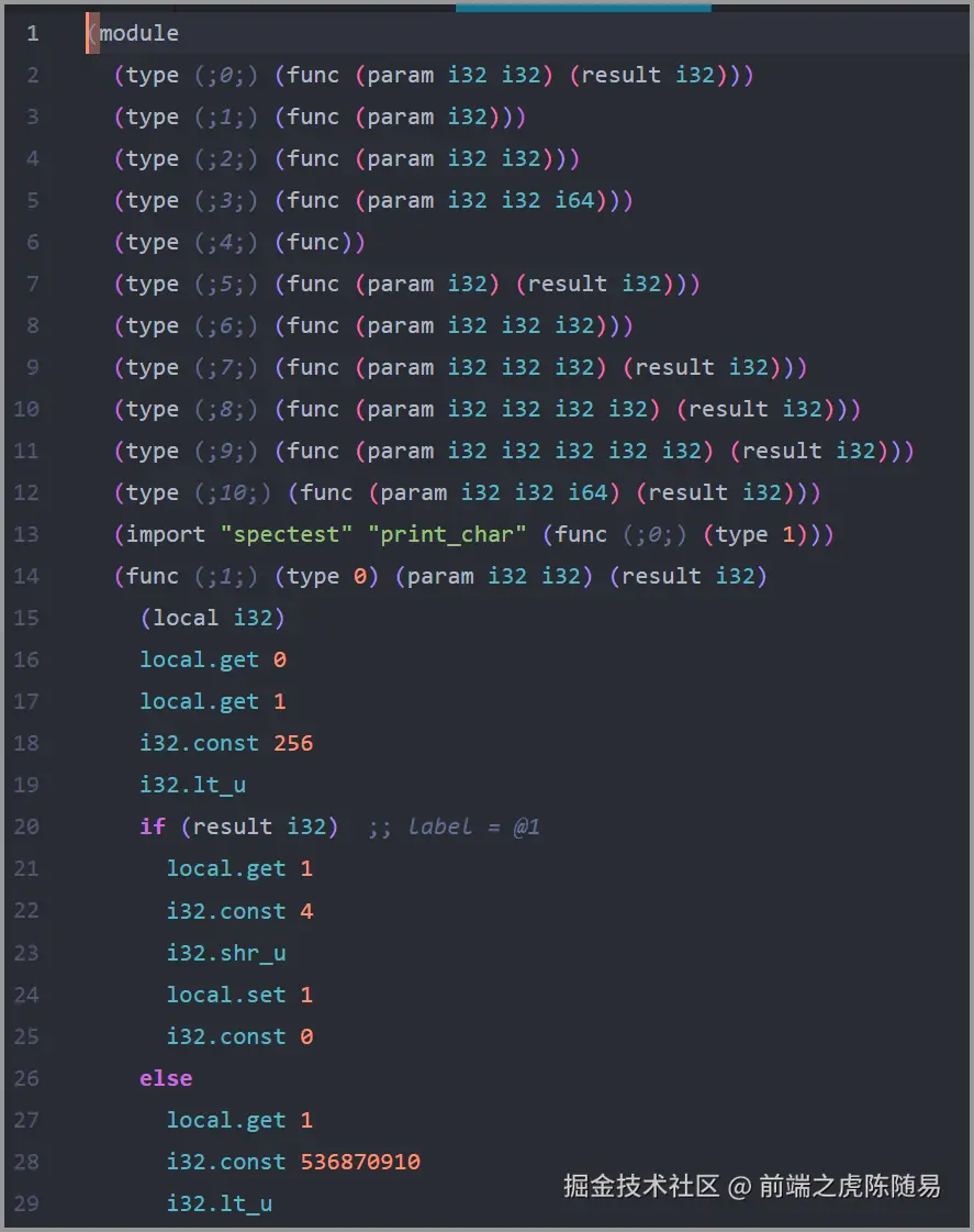 还有一个办法就是直接写 WebAssembly 语法,如下: