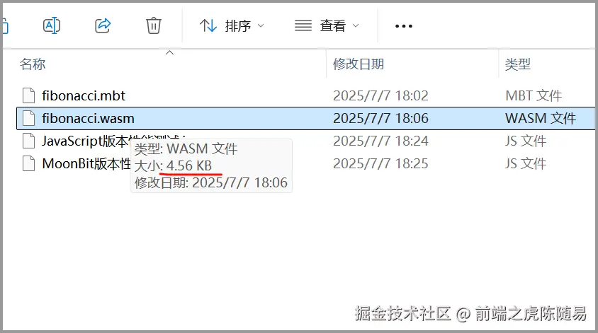 生成的 fibonacci.wasm 文件大小,也仅仅只有不到 5kb,非常轻量。