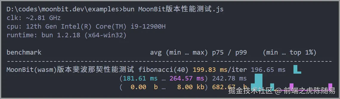 👆 这是 MoonBit(wasm) 的斐波那契函数代码和性能测试结果。