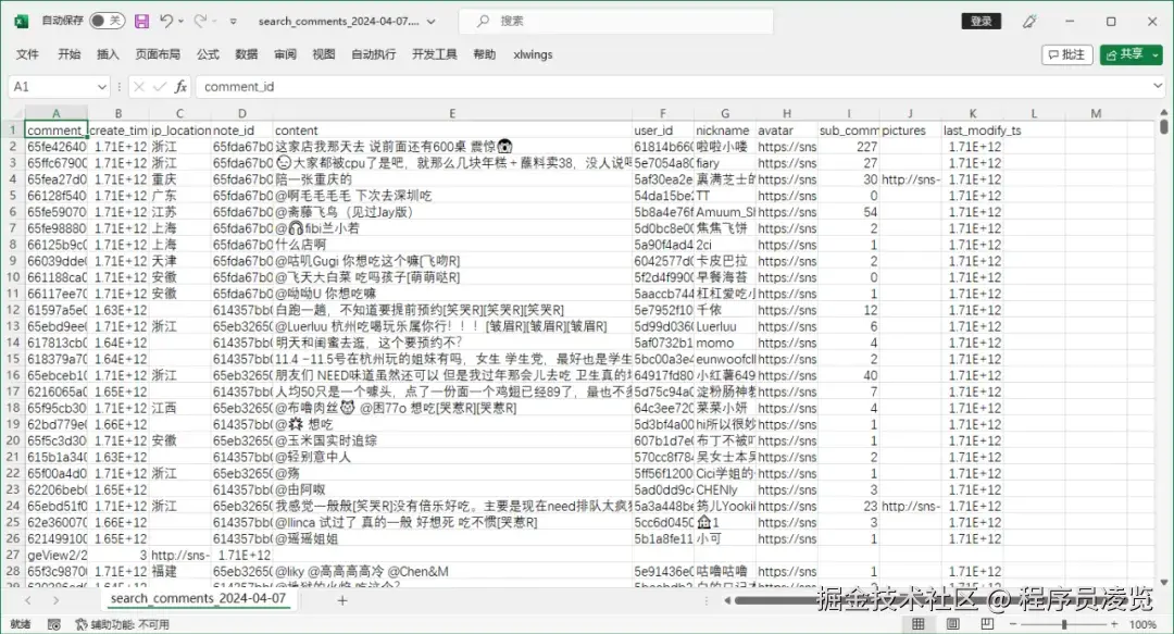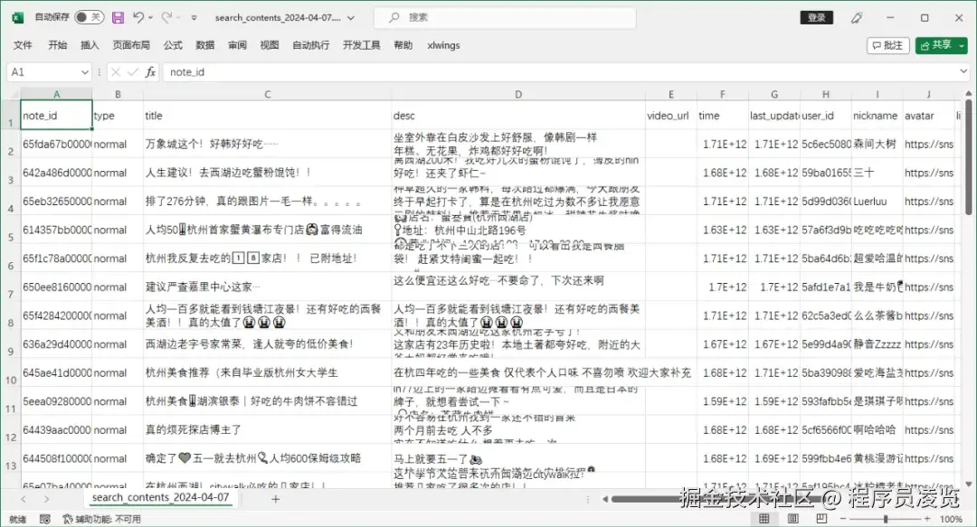 以小红书作为例子,命令行运行代码,保存的数据如下: