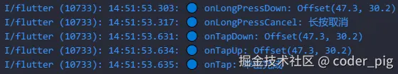 // ① 点击时先触发 onTapDown() → 抬手时触发 onTapUp() → 最后回调 onTap() 表示一个单击事件的触发。