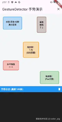 😄 在前面的章节《三十、🖌玩转自定义绘制三部曲[中]》中简要介绍过「GestureDetector组件」,并用它写了一些好玩的 "自定义手势" 案例: