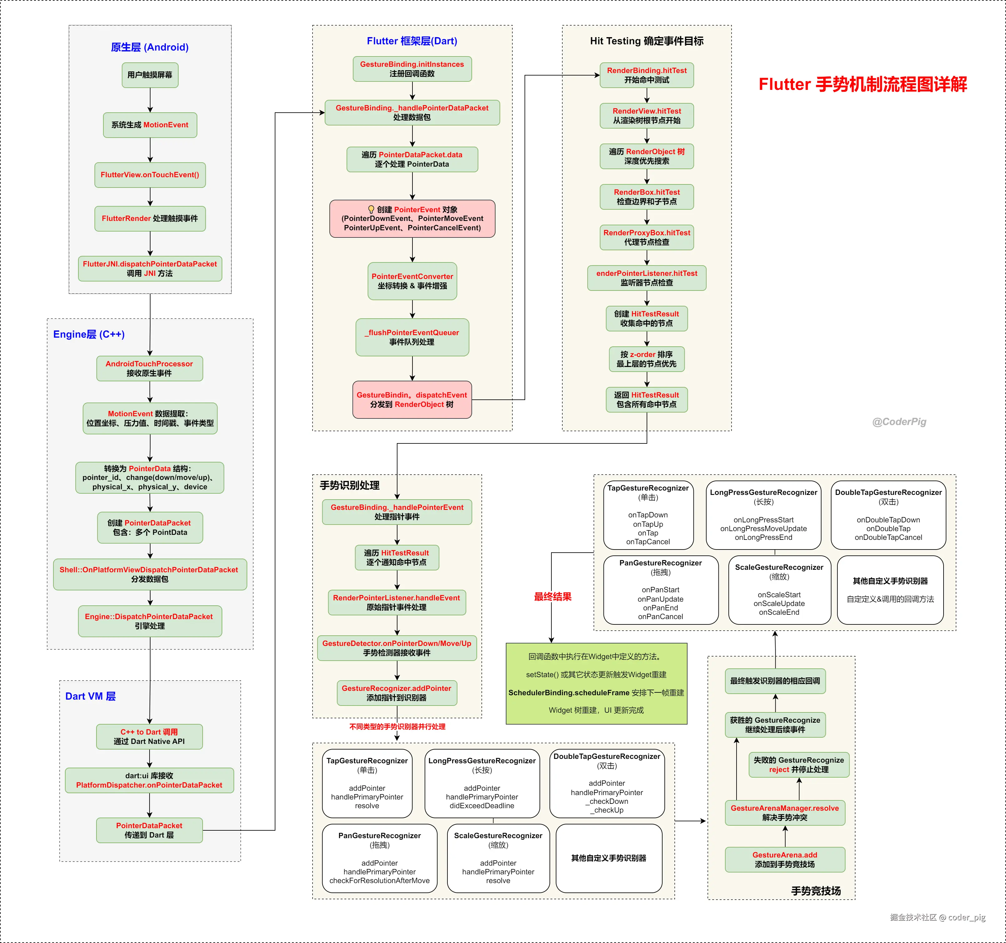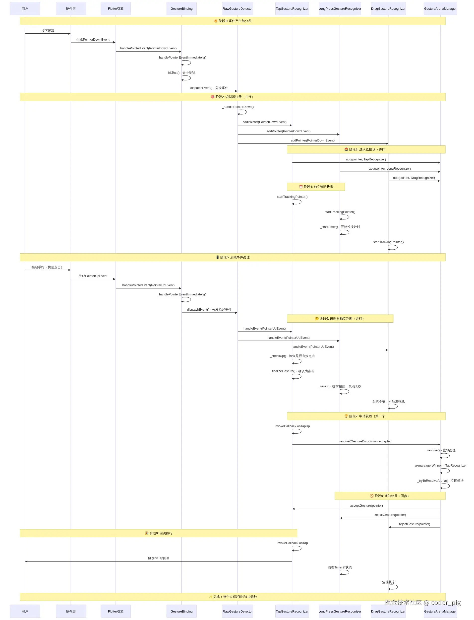 😁 本节主要系统研究下 "Flutter框架层" 的 "手势机制" 的实现原理,对研究过程不感兴趣的可以直接看流程图: