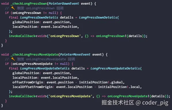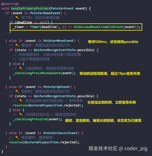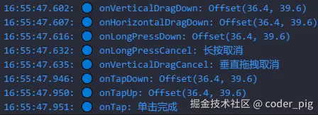 // ① 从上依次往下走,触点移动会不断触发 onLongPressMoveUpdate(),抬手触发 onLongPressEnd(),最后触发 onLongPressUp() 标志一次长按事件完成。