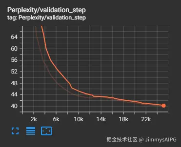 - 困惑度(Perplexity):困惑度可以通俗地理解为模型对下一个词的“惊讶程度”,值越低越好。下图显示,困惑度也随之快速降低,证明模型预测下一个词的能力在飞速提升。