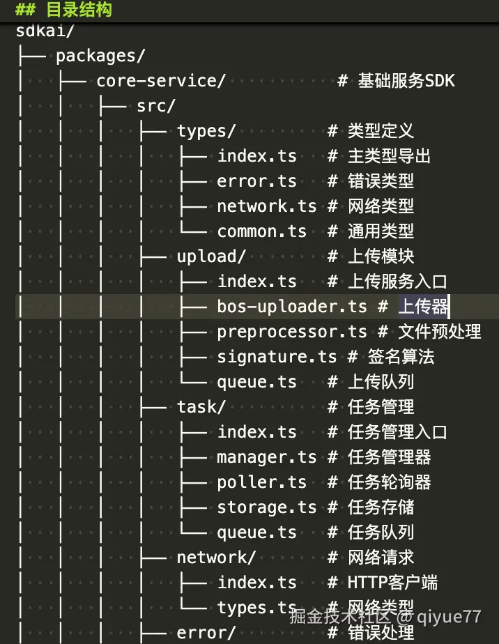 - 拆了四篇文档代表四个大任务,base项目结构基础、core-service 上传和任务、example 示例代码、image-editor图片编辑器