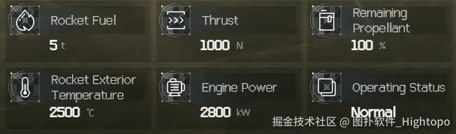 进入太空与轨道设定阶段后,图扑 HT 平台构建的交互界面与航天飞机的动力系统、推进系统等核心数据实现实时对接,应用 2D 图表直观呈现电源系统和推进系统的运行状态,以及发射器是否达到目标高度和目标速度等关键数据。