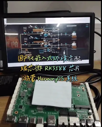 注: 下方视频为 HT 2D 组态页面在国产化嵌入式环境中的适配运行情况。该环境采用瑞芯微 RK3588 芯片,并搭载鸿蒙 HarmonyOS 系统。