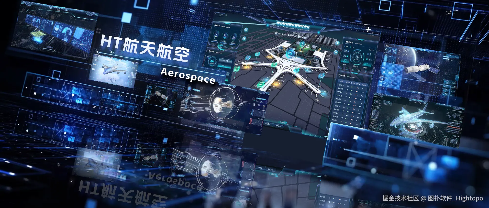 图扑软件依托自研 HT 强大的 3D 建模技术及数据整合能力,虚拟仿真了众多航天航空领域关键场景可视化,在设计验证、制造生产、测试评估及运营维护等全生命周期阶段,将复杂数据转化为多元化的可视化形式,通过提供全方位、立体化的解决方案,降低运营成本和风险。