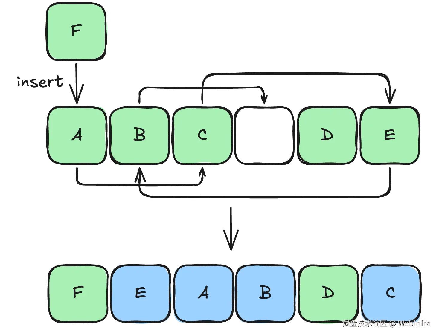 - 如果旧 key 重新分配 index 时发生冲突,重复以上步骤