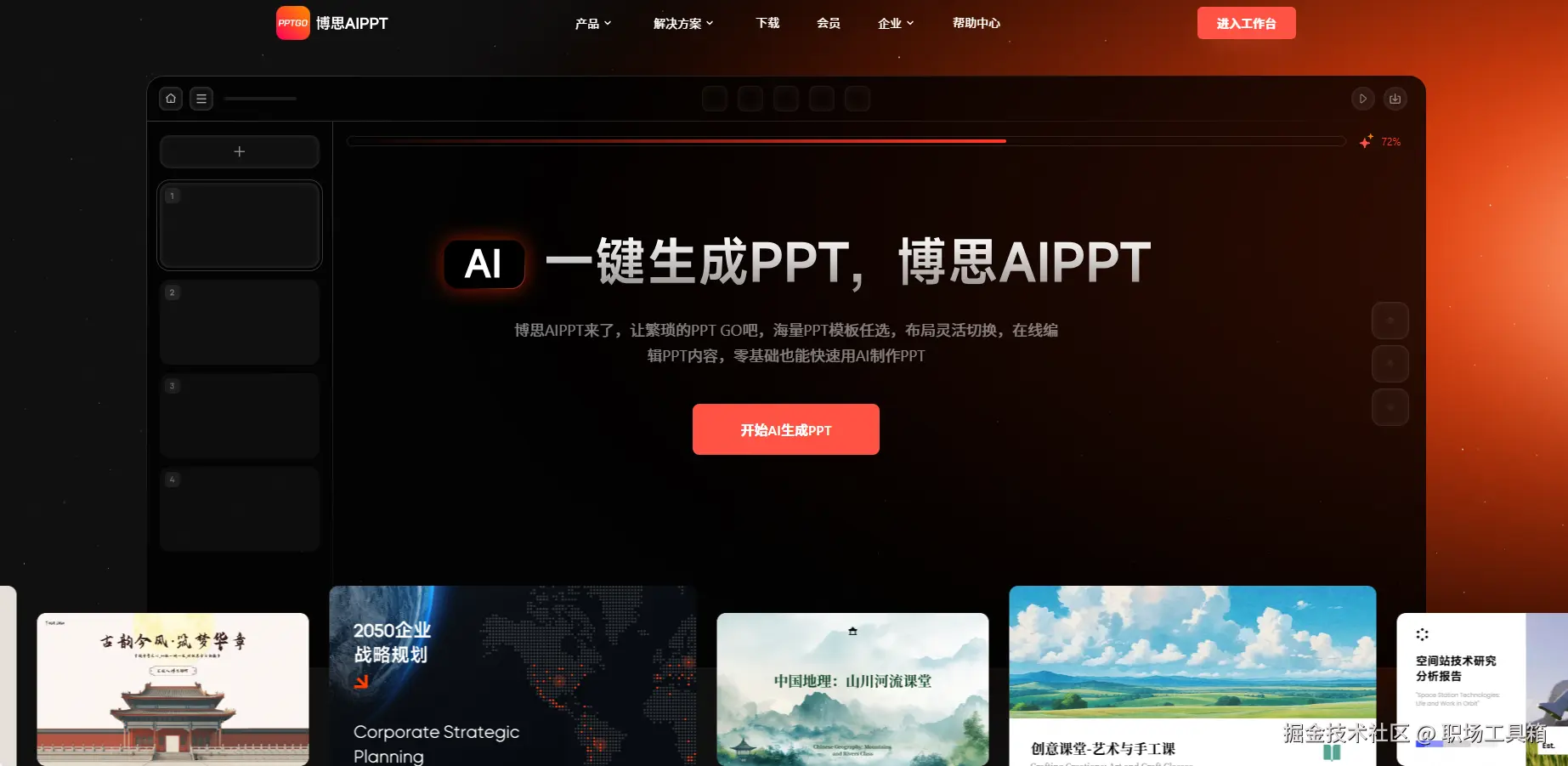 随着AI技术的发展,PPT制作工具正在变得更加智能和便捷。博思AIPPT等新兴AI生成PPT工具,通过云端技术解决了字体兼容性问题,为用户提供了更好的使用体验。如果你在意PPT制作的体验,推荐你也来尝试一下博思AIPPT,通过不断学习和实践,制作出既美观又实用的PPT作品。