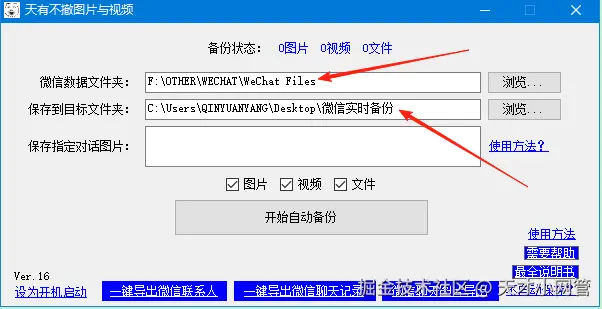 10,然后点击界面上的【开始自动备份】按钮就可以了,软件开始工作后,就会帮你保存收到的图片或者视频了