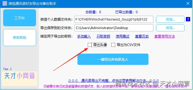 八,如果你需要导出头像,可以把这个勾上,这样导出就会把头像也导出了