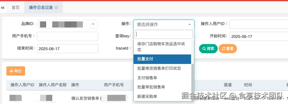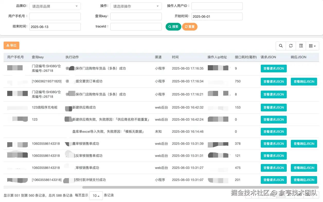 可以通过「操作用户ID」或者「用户手机号」,来定位指定用户的所有操作