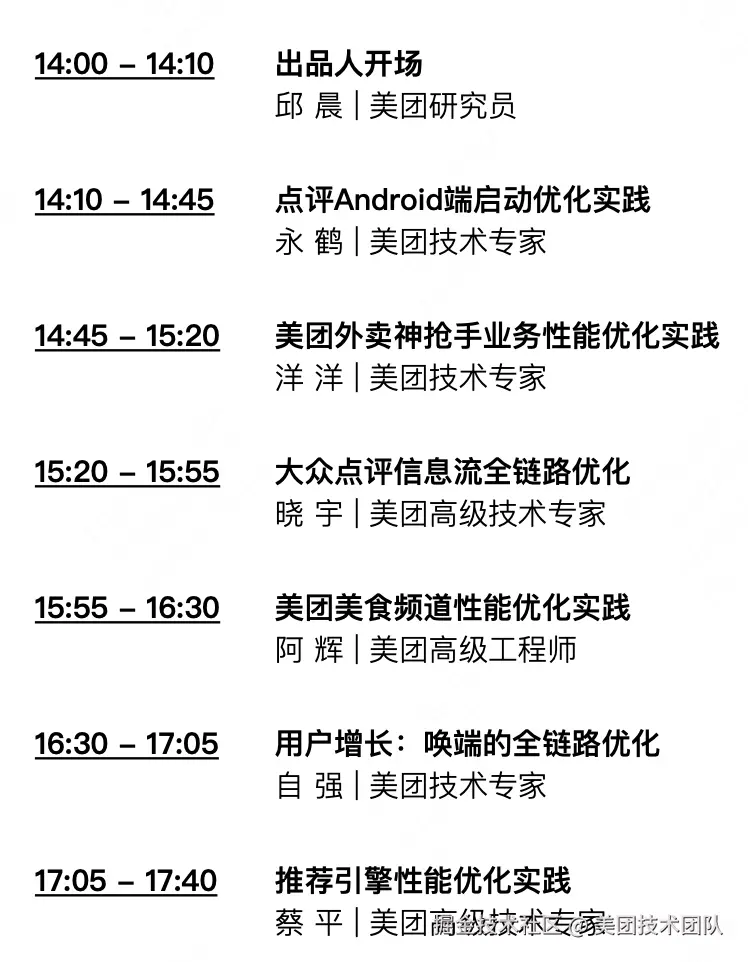 本次技术沙龙,我们与大家分享美团各业务场景在前端、全链路以及推荐引擎的性能优化实践与成果。