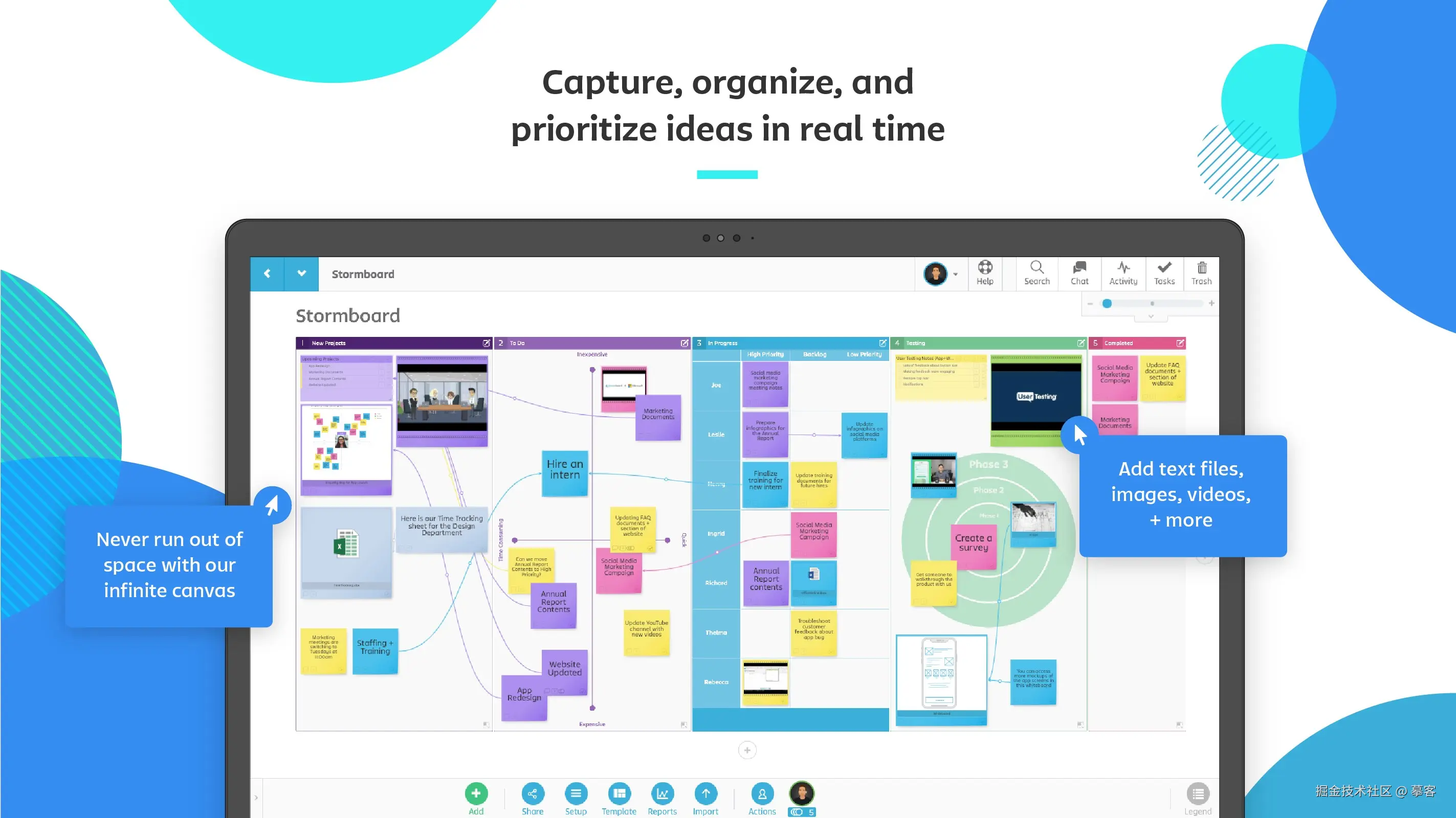 **推荐理由:**Stormboard 让创意讨论不止停留在画布上,而是一步步变成具体的行动计划,尤其适合敏捷团队和项目管理场景。