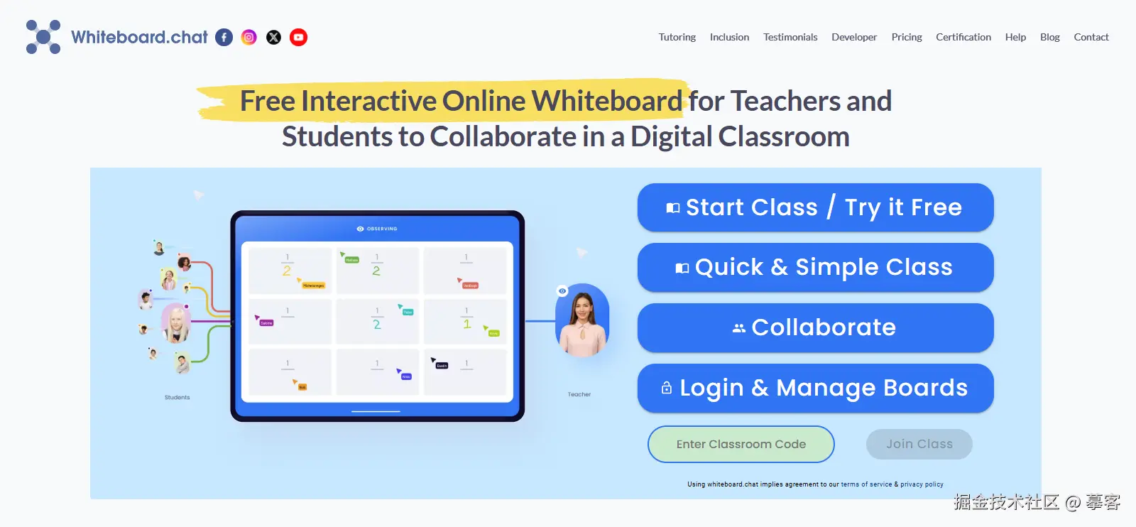 Whiteboard.chat 是一款专为教育场景设计的在线白板工具,支持老师与学生一对多协作,具备课堂互动、作业布置、实时讲解等教学功能。