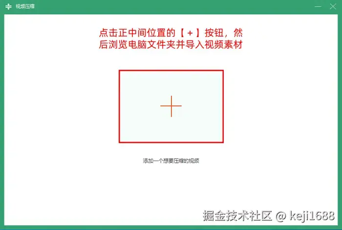 Step2:接下来,在导入视频素材的界面里,我们会看到一个 【+】 按钮,请点击此按钮之后浏览电脑文件夹,选择我们所需要压缩体积的视频文件,并且导入进来。