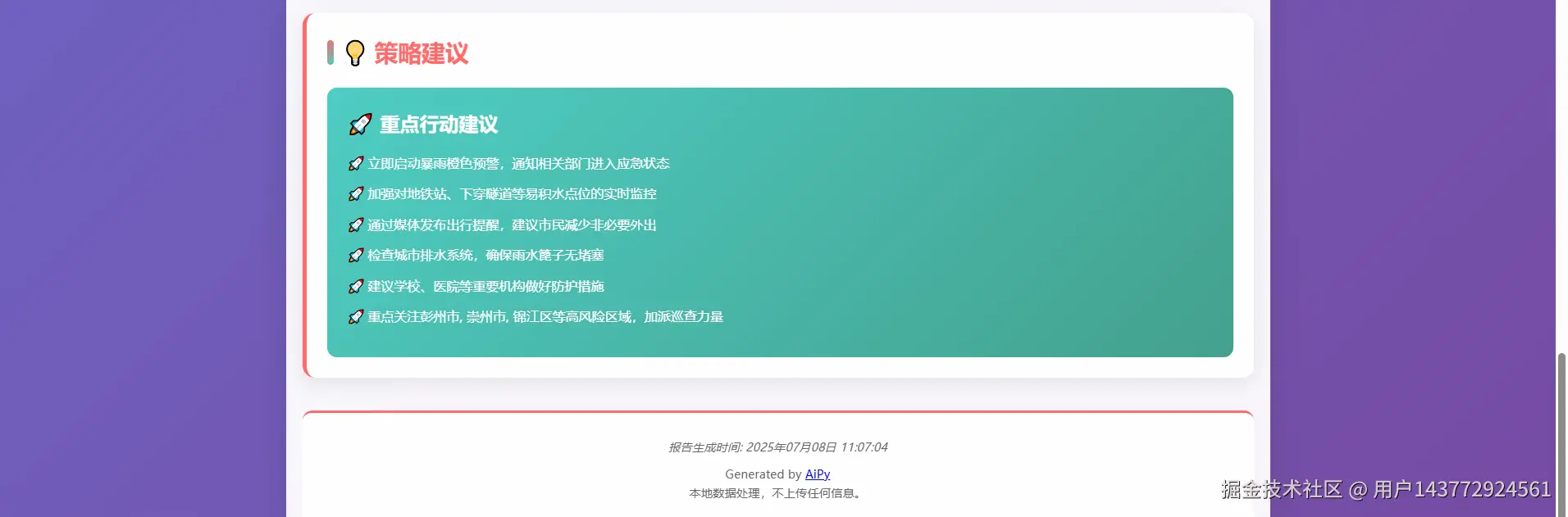 暴雨面前,技术能做的或许有限,但至少可以成为 “桥梁”—— 让专业数据走出报表,让普通人看懂风险,让应对措施更有针对性。