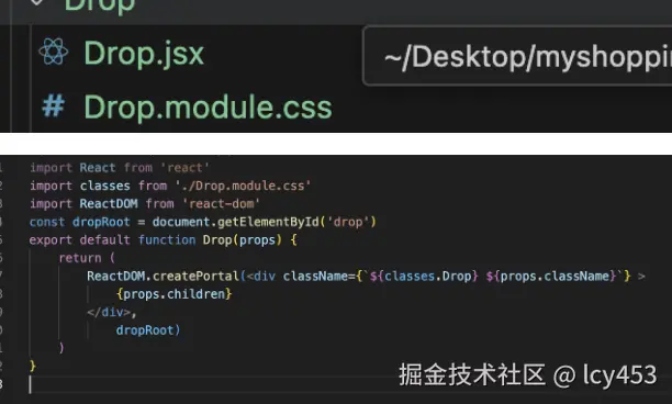 首先单独搞一个drop节点,因为这样可以跳脱三界之外,不会和根节点里面的样式起冲突,因为当前的根节点我们不能最上面添加一层遮罩层,会导致布局混乱,因为根节点里面的组件也会有各种各样的布局。而我们遮盖层需要最上方,不被其他定位干扰,不被父组件的overflow:hidden影响,所以我们跳脱三界之外 。