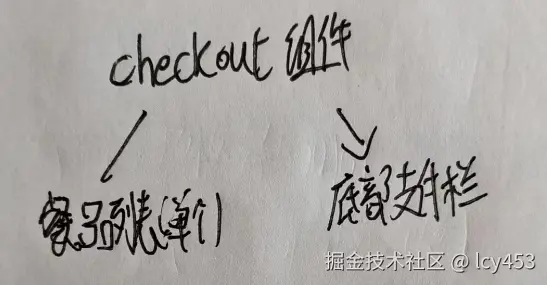这就是整个支付页面,我们在Context存好了我们的购物车详情数据,那么我们就只需要去展示在这里就好了,因为展示的内容不同,所有还需要细分组件,比如这里我们还需要一个底部以及列表分三部分。