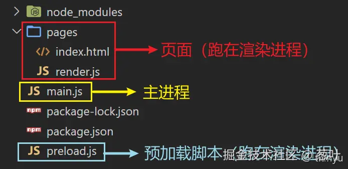 main.js运行在应用的主进程上,无法访问Web相关API,主要负责:控制生命周期、显示界面、控制渲染进程等其他操作。