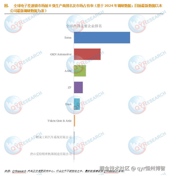 根据QYResearch头部企业研究中心调研,全球范围内电子差速锁生产商主要包括Eaton、GKN Automotive、AAM等。2024年,全球前三大厂商占有大约59.0%的市场份额。