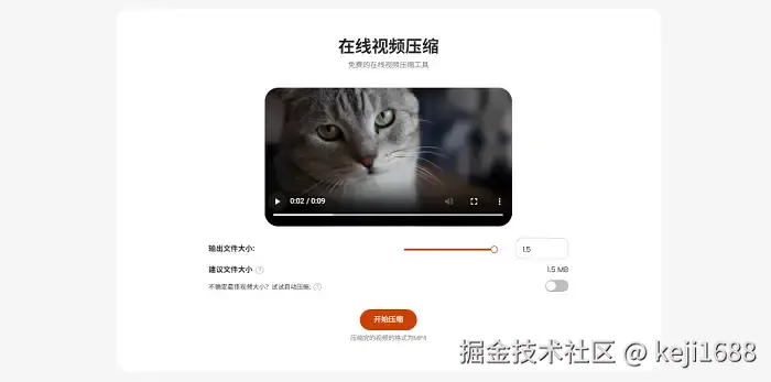 操作步骤:我们上传视频文件之后,可以参考网站为你提供的【建议文件大小】的数值,然后调节【输出文件大小】的值尽量大于【建议文件大小】的数值,以免输出视频的清晰度失真,最后点击【开始压缩】便可。